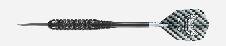 Jeu de fléchettes à pointe acier Harrows Black Arrow, en laiton, pour cible traditionnelle en sisal.