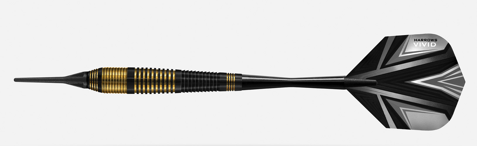 Jeu de fléchettes Harrows Vivid, en laiton, pour cible électronique.